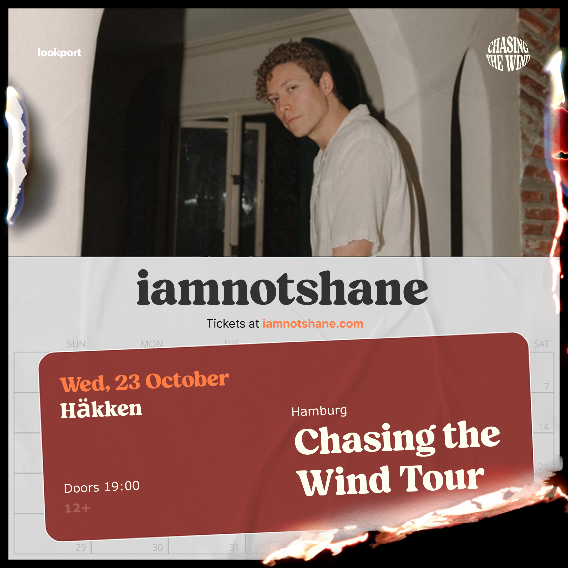 Nach über 160 Millionen Streams weltweit bringt die Indie-Pop-Sensation iamnotshane aus Los Angeles seine einzigartige Mischung aus Alt-Pop mit der „Chasing the Wind“-Tour nach Europa. Bekannt für seine introspektiven Texte und seinen unverwechselbaren Sound, verwebt iamnotshane unkonventionelle Erzählungen mit Pop-Melodien mit einem Hauch von Absurdität und macht seine Shows zu einem einzigartigen Erlebnis. Sein hochenergetischer und einzigartiger Tanzstil verleiht seinen Auftritten eine elektrisierende Dimension und verspricht den Fans ein unvergessliches Live-Erlebnis.