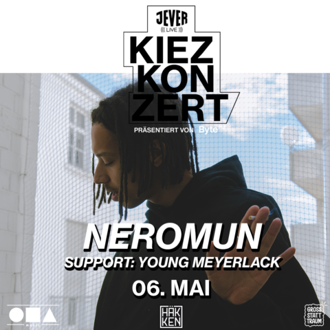 Foto © Nils Ladewig Vorverkauf: 18 € Abendkasse: tba Aufgrund der Lockerungen der Covid-19 Regelungen findet das Konzert ohne Einschränkungen statt. Das Tragen einer Maske wird nichtsdestotrotz empfohlen. – Jever Live Kiezkonzert im Häkken präsentiert von ByteFM Neromun – Blass Tour 2022 – Einlass: 19:00 Uhr // Beginn: 20:00 Uhr Support: Young Meyerlack – Berlin,…